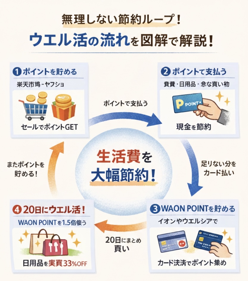 最強のポイ活といえば「ウエル活」。 これほどシンプルに、かつ確実に生活費を下げられる方法を私は他に知りません。