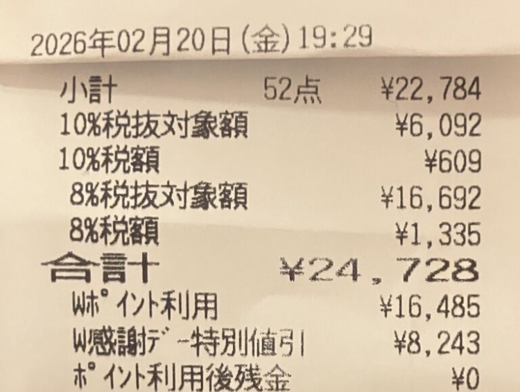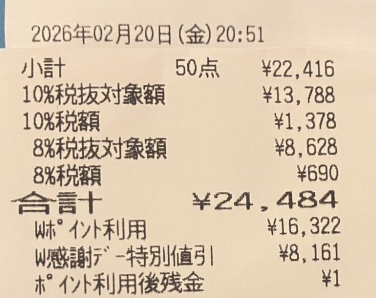 文字だけでは伝わりにくいので、 私のウエル活のレシートを公開します。